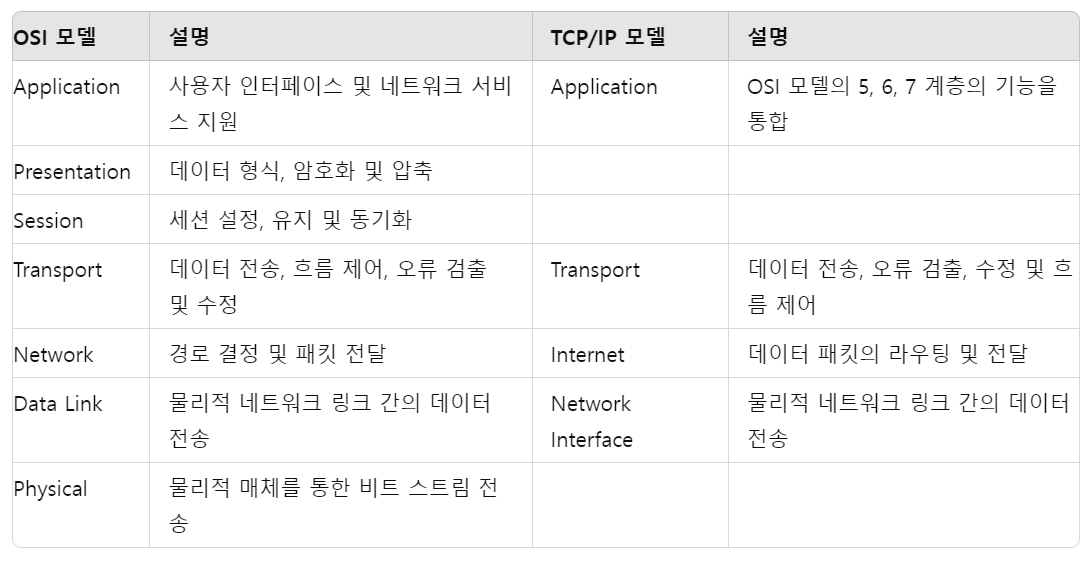 - OSI 모델과 TCP/IP 모델의 주요 차이점