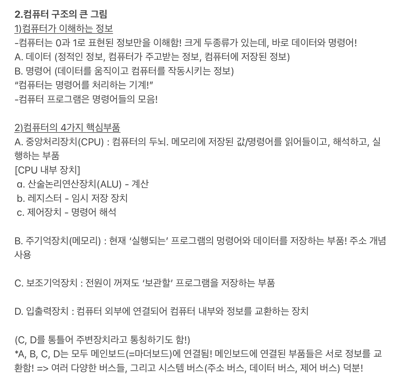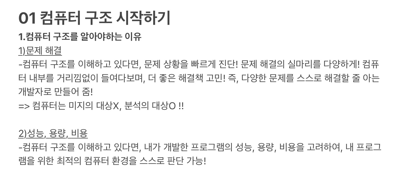 컴퓨터 구조를 알아야하는 이유 및 컴퓨터 구조에 대한 큰 그림, 그리고 컴퓨터를 어떻게 작동시키는지!를 알 수 있었다ㅎㅎ