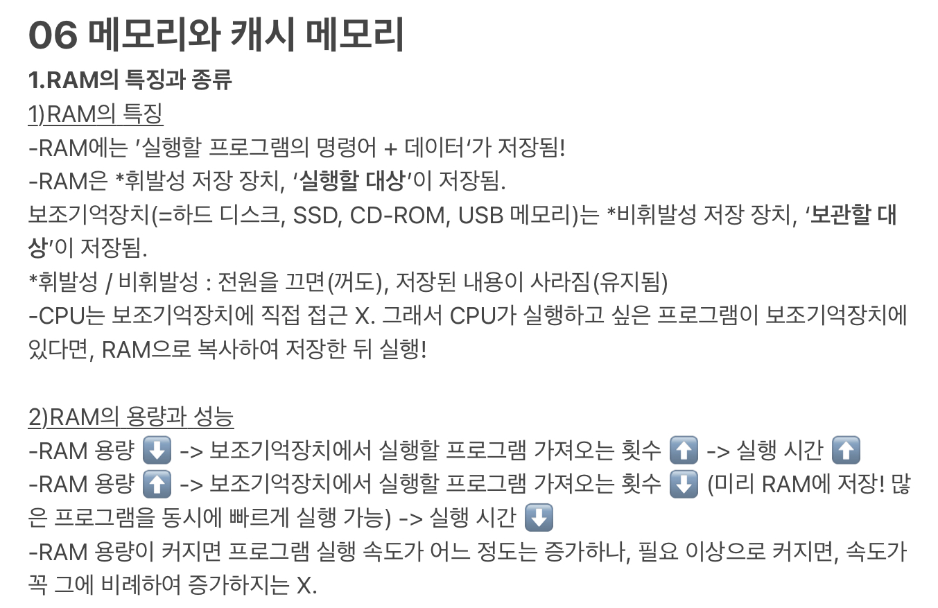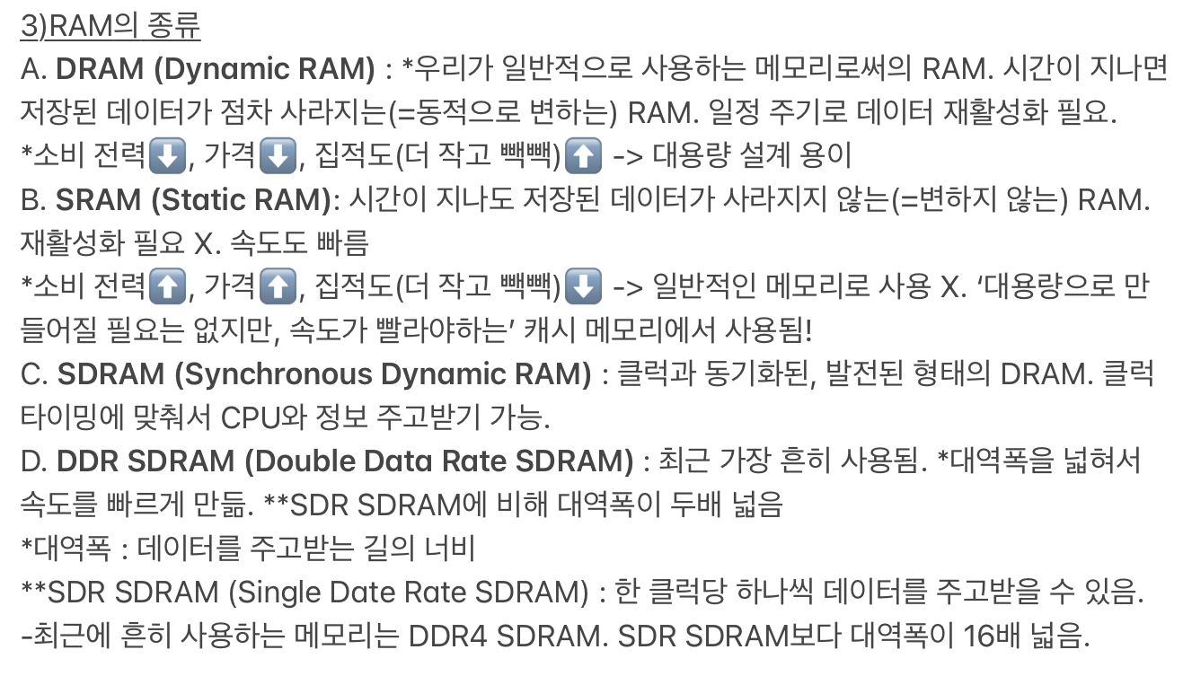 저번 주에 이어서, 컴퓨터의 네 가지 핵심 부품인 CPU, 메모리, 보조기억장치, 입출력장치에 대해 하나씩 살펴본다!